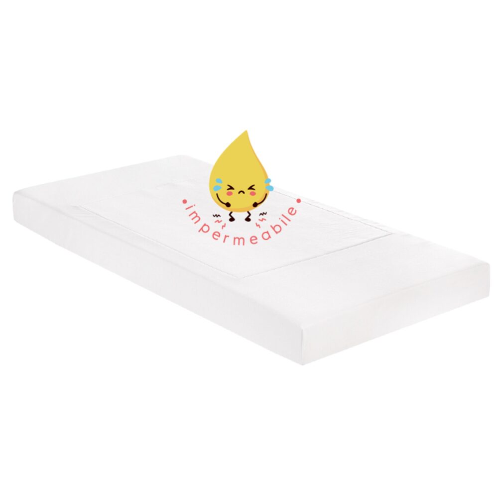 Lenzuolo in jersey di puro cotone 100% con pipì stop cucito all’interno, con angoli elasticizzati. Protegge efficacemente il materasso e resta sempre asciutto.
