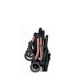 - Facilità di Chiusura: Sistema di chiusura ad una sola mano con gancio di chiusura automatico, permettendo al passeggino di rimanere in piedi autonomamente.