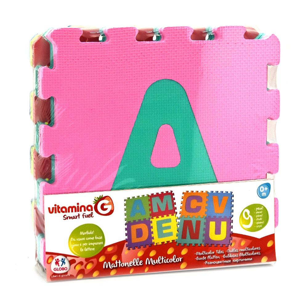 Crea il tuo Tappetone Puzzle, composto da 9 coloratissime mattonelle 32×32 cm, con tante formine rappresentanti le lettere dell’alfabeto tutte da attaccare e staccare.